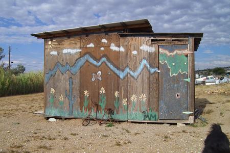 My wife and son Mathew illustrated our rustic shed in 2,000. Notice my father's wrecked Piper Cherokee in background.